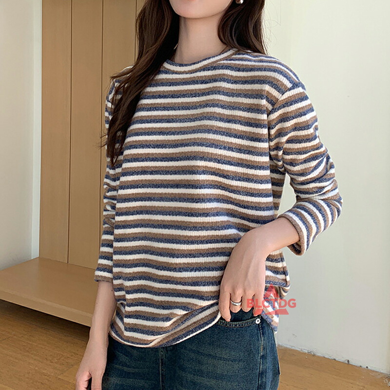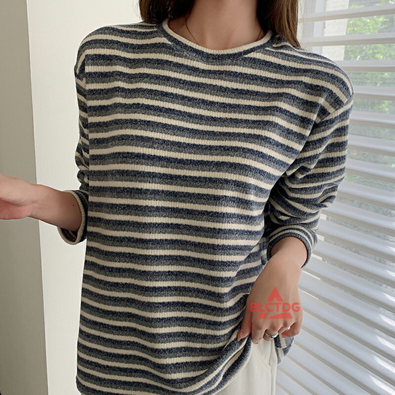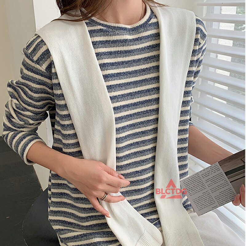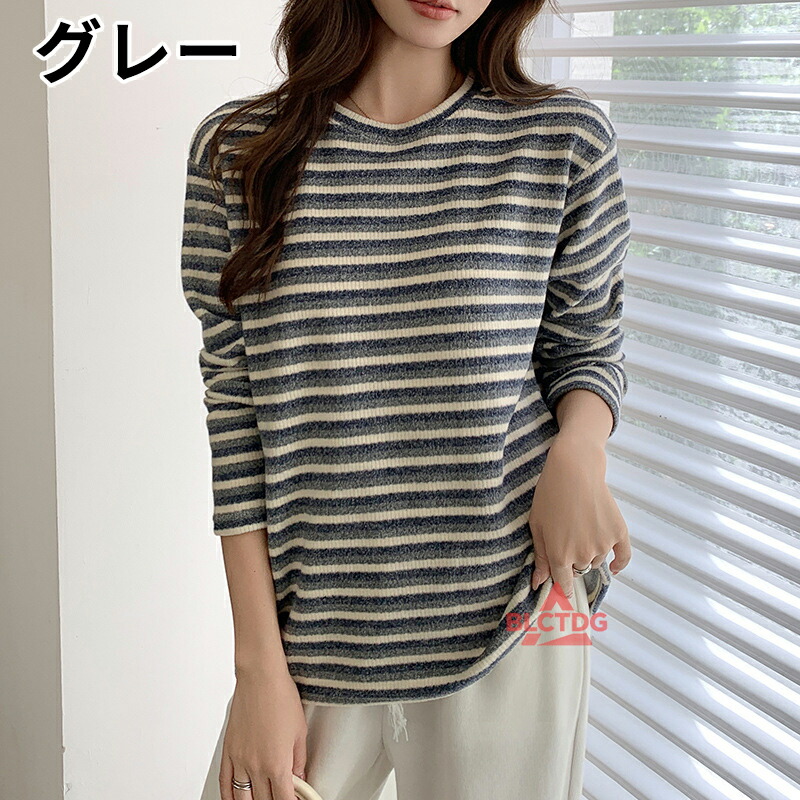 ニット レディース ボーダー柄 セーター クルーネック ニットセーター トップス 暖かい 保温 長袖 ニットトップス オフィスカジュアル 洗えるニット ビジネス
