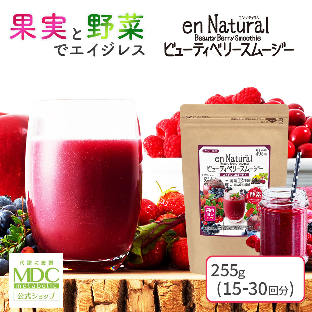 | 原材料 | アカシア食物繊維(フランス製造)、含蜜糖、コンニャクイモ抽出物、リンゴ食物繊維、粗糖、粉末油脂(乳成分を含む)、植物発酵エキス末(大豆・バナナ・山芋・リンゴを含む)、アサイー果汁末、ビートルートエキス末、果汁エキス混合末(カシス果汁、ラズベリー果汁、ブルーベリー果汁、アロニア果汁、リンゴンベリー果汁、クランベリー果汁、アサイーエキス、ボイセンベリー果汁)、さつまいも(アヤムラサキ)末、穀物発酵エキス末(小麦を含む)、グレープシードエキス末、イチゴ果汁末、マキベリー果汁末、乳酸菌末(殺菌)/増粘剤(グァーガム)、酸味料、香料、着色料(アントシアニン)、甘味料(ステビア)、V.C、V.E、ナイアシンアミド、パントテン酸Ca、V.B2、V.B1、V.B6、V.A、葉酸、V.D、V.B12 |
