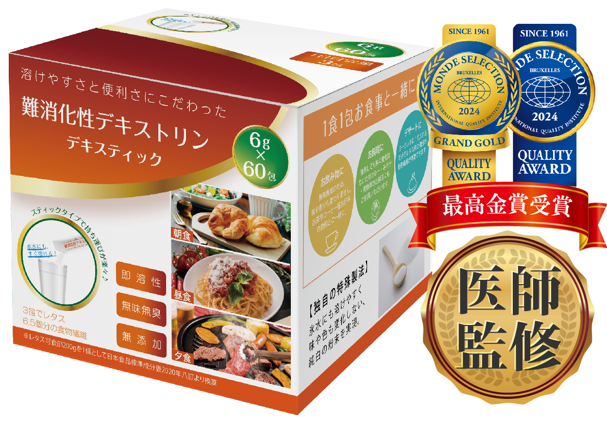 医師監修 難消化性デキストリン 個包装 大容量 6g×60包 水溶性食物繊維 すぐと溶け 持運べる スティックタイプ フランス産とうもろこし デキスティック