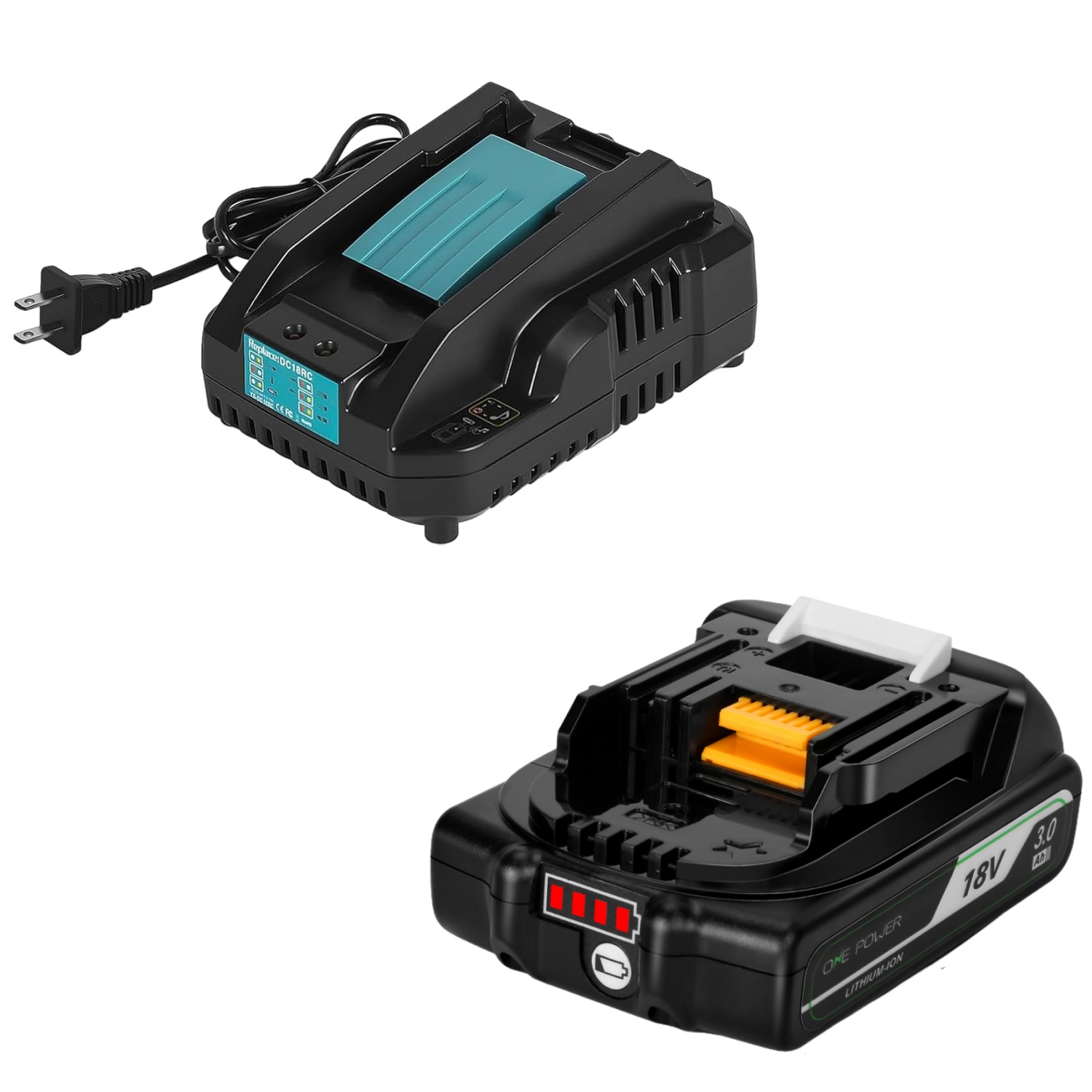 【商品仕様】バッテリー型番:マキタ 18V バッテリー互換品 BL1830B ■18V / 3.0Ah ■リチウムイオン電池 充電器:マキタ急速充電器 DC18RC 互換品