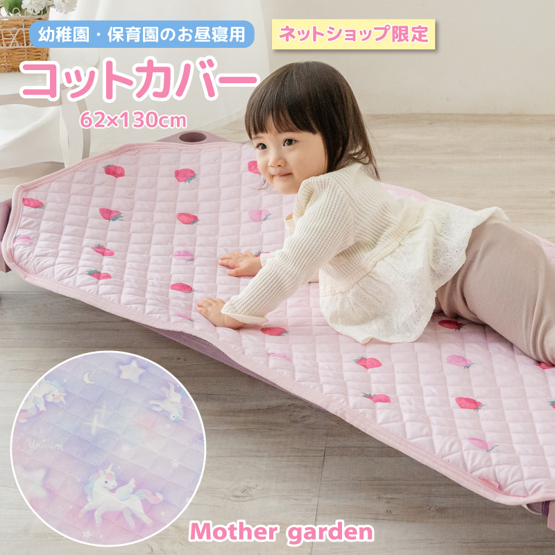 コットカバー 62×130cm 〔ユニコーン 野いちご〕 お昼寝用 コット カバー キルティング カバー 敷きパッド 洗える 四隅ゴム 園児用