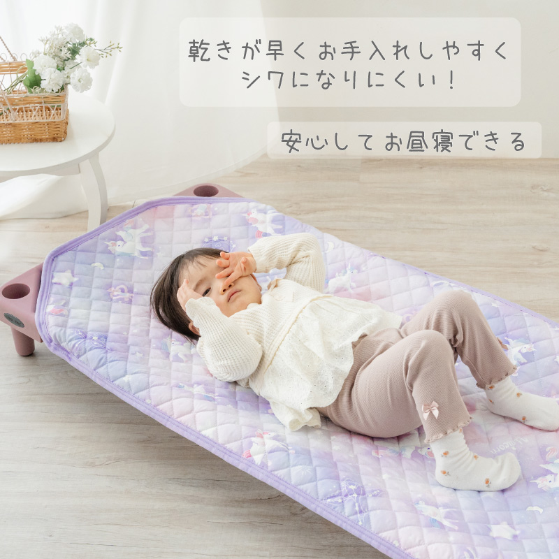 キルティング仕様なので、ほどよいクッション性があり、お昼寝タイムを快適にサポート。