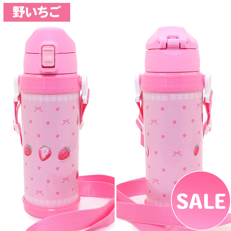 送料無料 水筒 キッズ 子供 女の子 直飲み ステンレス 水筒 ステンレスボトル 800mL 野いちご 真空二重構造 ショルダーベルト付き ダイレクト 保冷専用