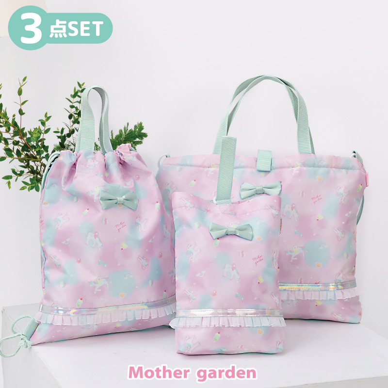 マザーガーデン ユニコーン 通園・通学バッグ 3点セット〔コットンキャンディ〕入園セット 女の子 入学準備 レッスンバッグ 入園グッズ お着替え巾着リュック