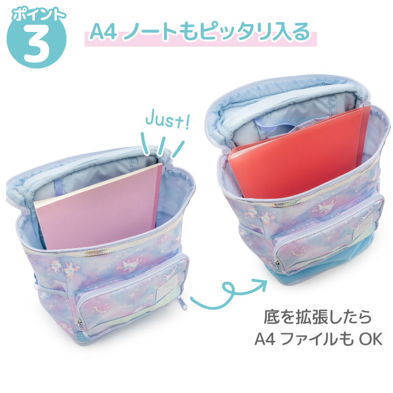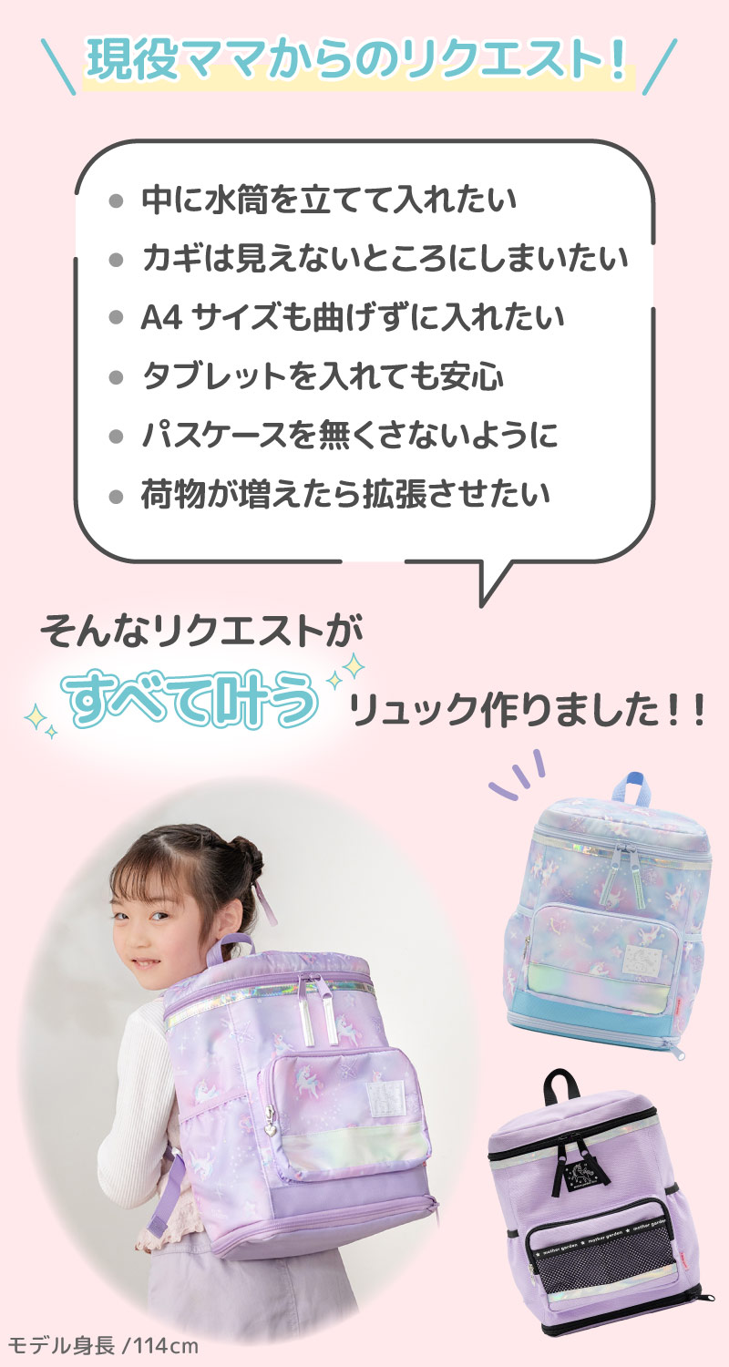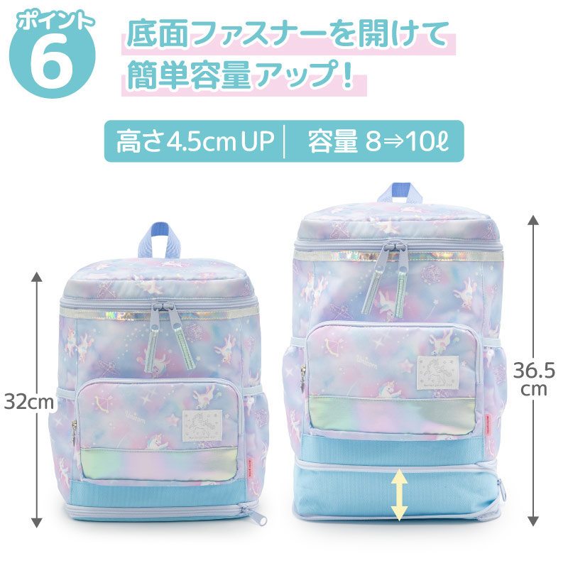 リュック キッズ 子供 スクエアリュック Mサイズ ユニコーン スクエア型 拡張機能付き A4対応 キッズリュック 女の子 リュックサック