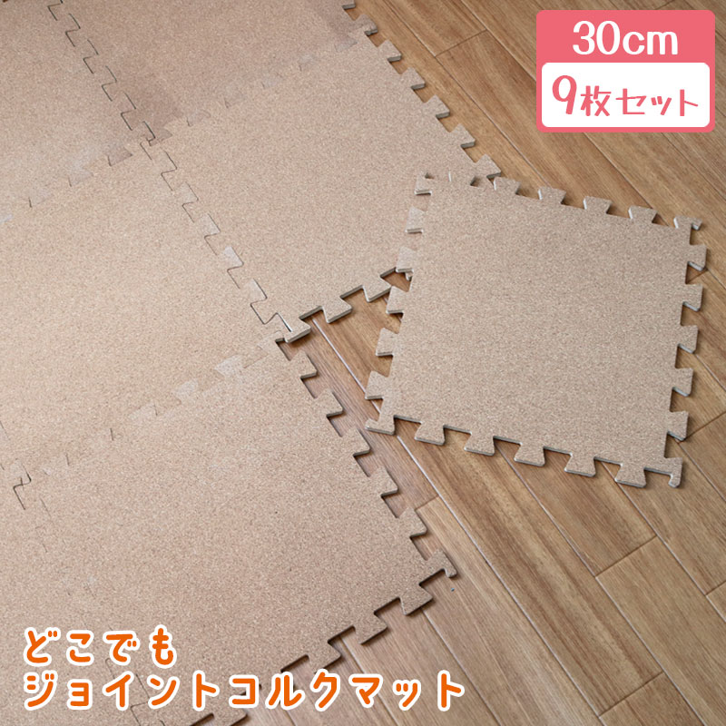 ジョイントマット コルクマット 30cm 9枚入 防音対策 防水 床 キズ防止 お手入れ簡単 クッション性 保温性 パズルマット フロアマット VJCO-30 4977932274266