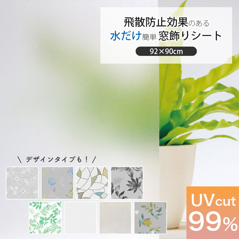 飛散防止効果のある 窓飾りシート すりガラス 92x90cm 窓シート 窓フィルム ガラスフィルム UVカット99% 目隠し 貼ってはがせる 吸着 日よけ 遮光 装飾 日本製 防犯 防災 送料無料