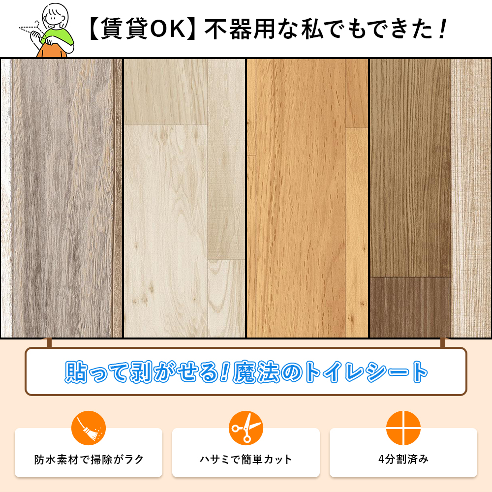 トイレ模様替えシート トイレマット 防水 トイレ床材 90cm×200cm 送料無料 リメイクシート フロアマット 日本製 トイレ床 簡単に貼れる 吸着 貼ってはがせる 汚れに強い 防水性 拭ける お手入れ簡単 diy はがせる シート トイレマット おしゃれ フロア 模様替え 賃貸 クッションフロア 床材 かわいい 明和グラビア 木目