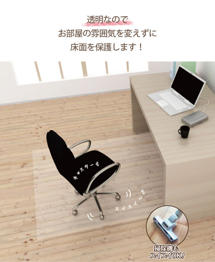 透明 チェアマット 90×120cm 日本製 クリア 吸着 カットOK 傷防止 0.5mm厚 傷 防水 拭ける お手入れ簡単 国産 クリアー テーブルマット マット 115200101810