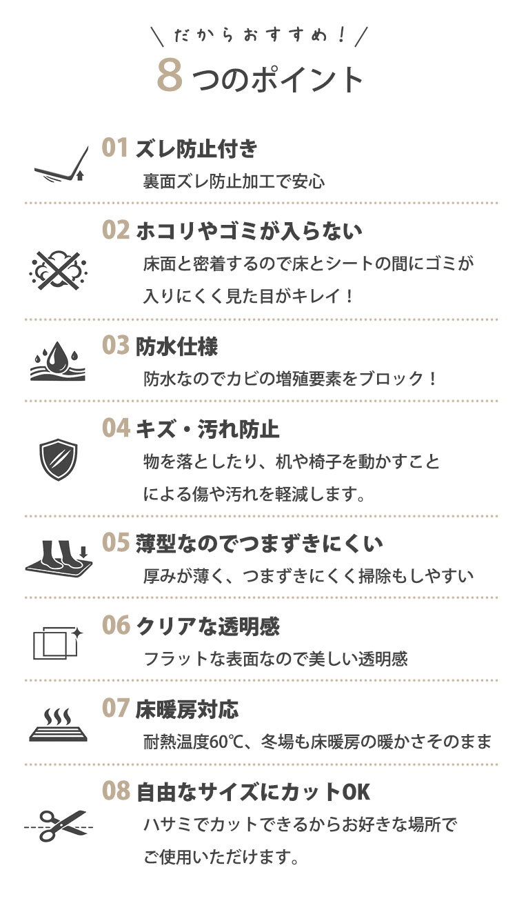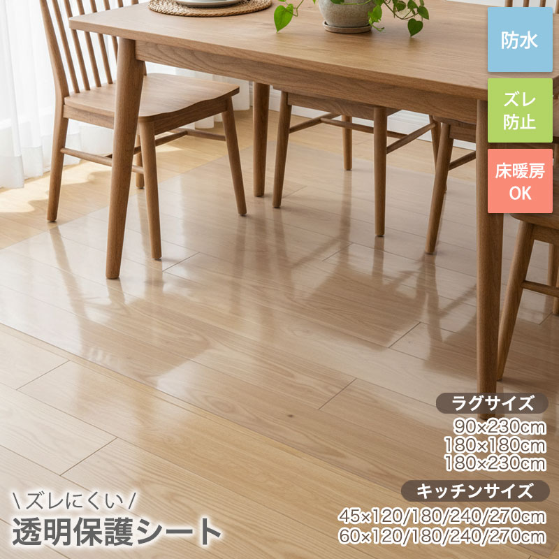透明ダイニングラグ 透明フロアシート キッチンマット キッチンシート 台所マット 保護マット 傷防止 汚れ防止 クリアマット 防水 拭ける 床暖房対応 防汚 薄型 保護シート ダイニグラグ ペット 子ども フローリング 透明マット 日本製 ダイニングシート ダイニングマット 90cm×230cm 180cm×180cm 180cm×230cm 45cm×120cm 45cm×180cm 45cm×240cm 45cm×270cm 60cm×120cm 60cm×180cm 60cm×240cm 60cm×270cm 明和グラビア