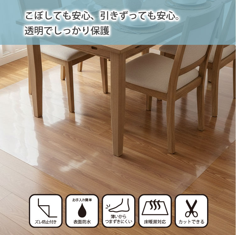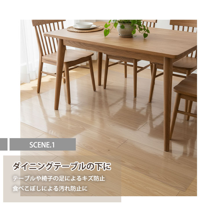 ・キズや汚れから床を守る!透明ダイニングラグ