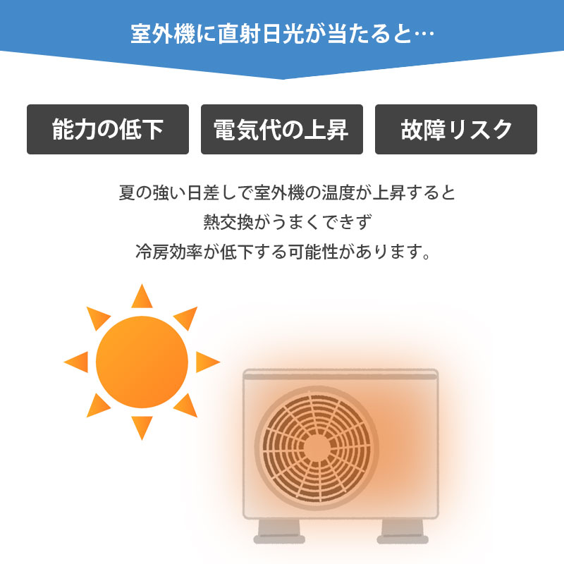 特に・午後の西日が当たる場所・ベランダなど高温になりやすい場所では室外機の負担が軽減され、設定温度までの到達時間が早くなったと感じる方も多くいらっしゃいます。