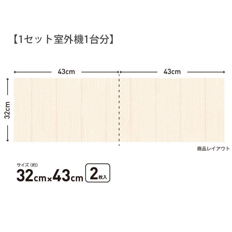 Q:うちの室外機でも使える?A:本製品は**32cm×43cmのシート2枚セット(1台分)**です。