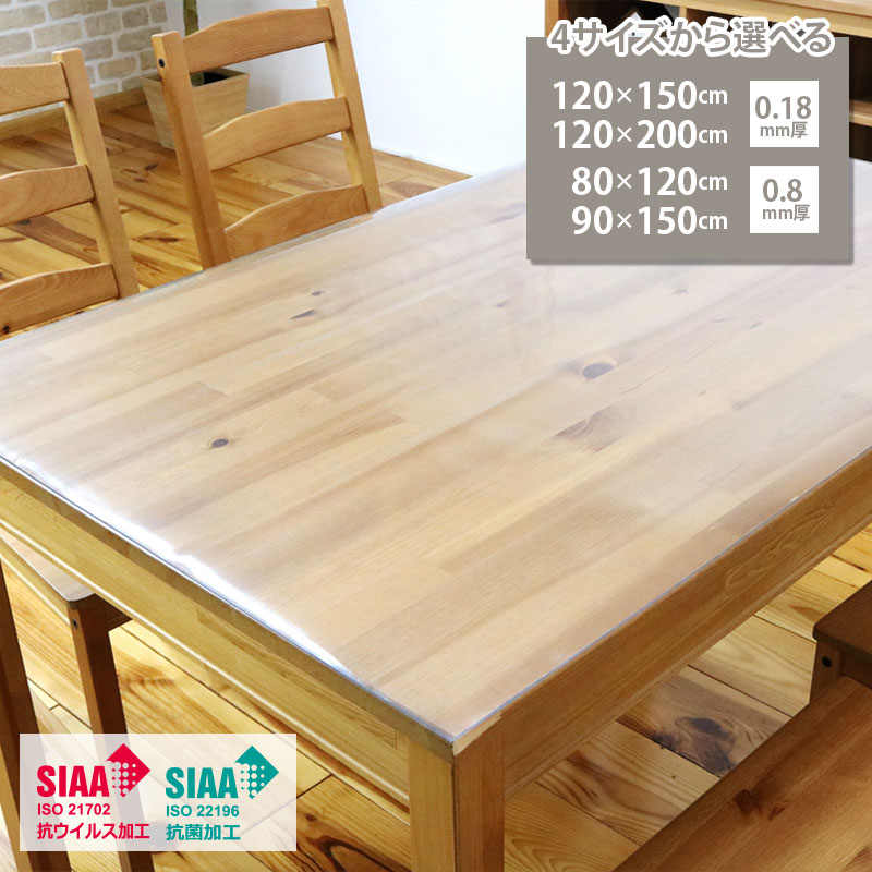 テーブルマット 透明 テーブルカバー テーブルクロス 透明 機能付き 4人掛け 6人掛け 0.8mm厚 0.18mm厚 デスクマット 汚れ防止 防水 撥水 防汚 キズ防止 SIAA 抗ウイルス 抗菌 さらさら ベタつかない シンプル クリア テーブル保護 日本製 送料無料 VKSKT