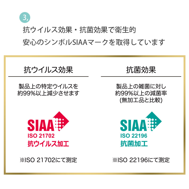 ・SIAA認証の抗ウイルス、抗菌加工で衛生的