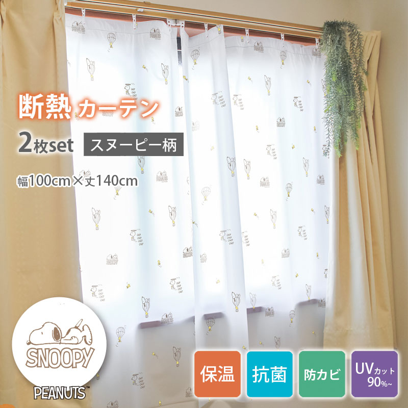 断熱 カーテンライナー ビニールカーテン レースカーテン スヌーピー 冷気遮断 寒さ対策 熱気遮断 暑さ対策 結露対策 暖房効率UP 冷房効率UP 年中使える 省エネ 節電 あったか 100cm幅×140cm丈 2枚組 保温 防カビ 抗菌 UVカット 明和グラビア