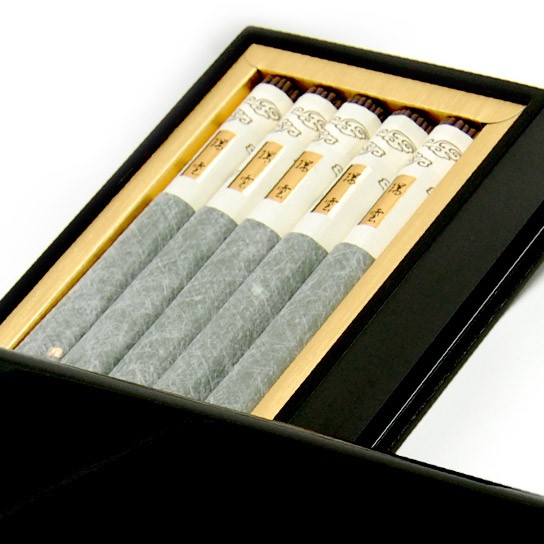 そんなお線香を、重厚感溢れる本塗箱に収めました。