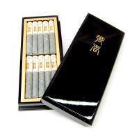 吟味厳選した香木を秘伝の調香技術で練り上げた、奥深い伽羅の香りのお線香です。 燃焼時間は約25分。 1束約23gが、10本入っています