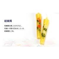 和蝋燭を模したかたちに、色違いの菊の花をあしらった絵蝋燭を2本。