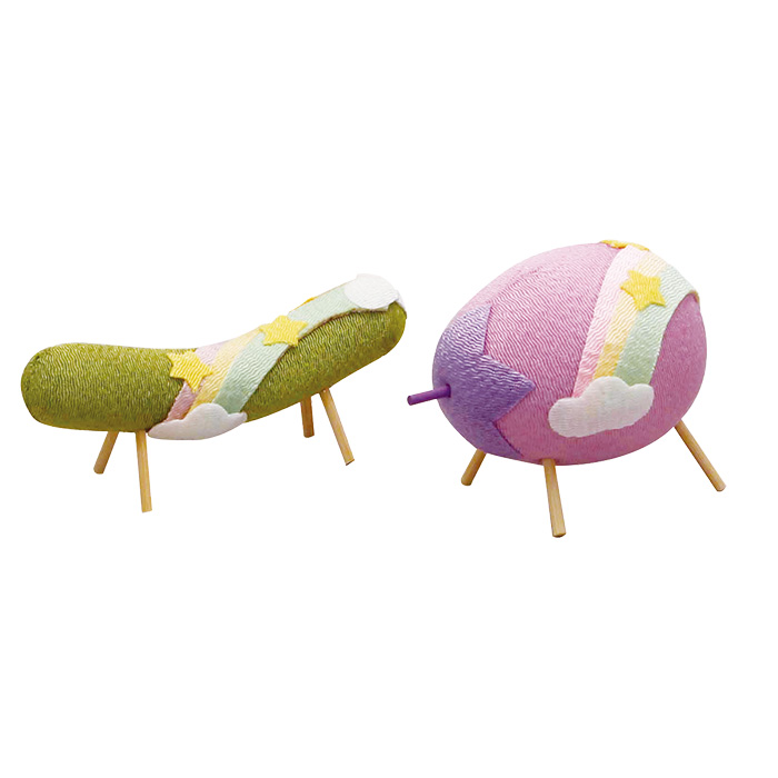 ちりめん生地で作られた愛らしい姿は、お部屋の中を明るく彩ります。