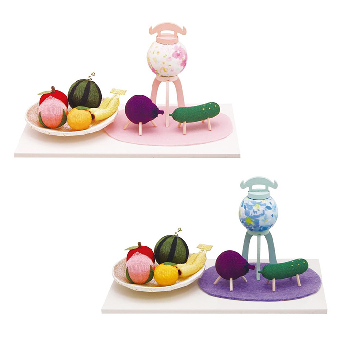 盆提灯と精霊馬。お盆のお迎えに欠かせないお飾りが、可愛らしいサイズでセットになりました!