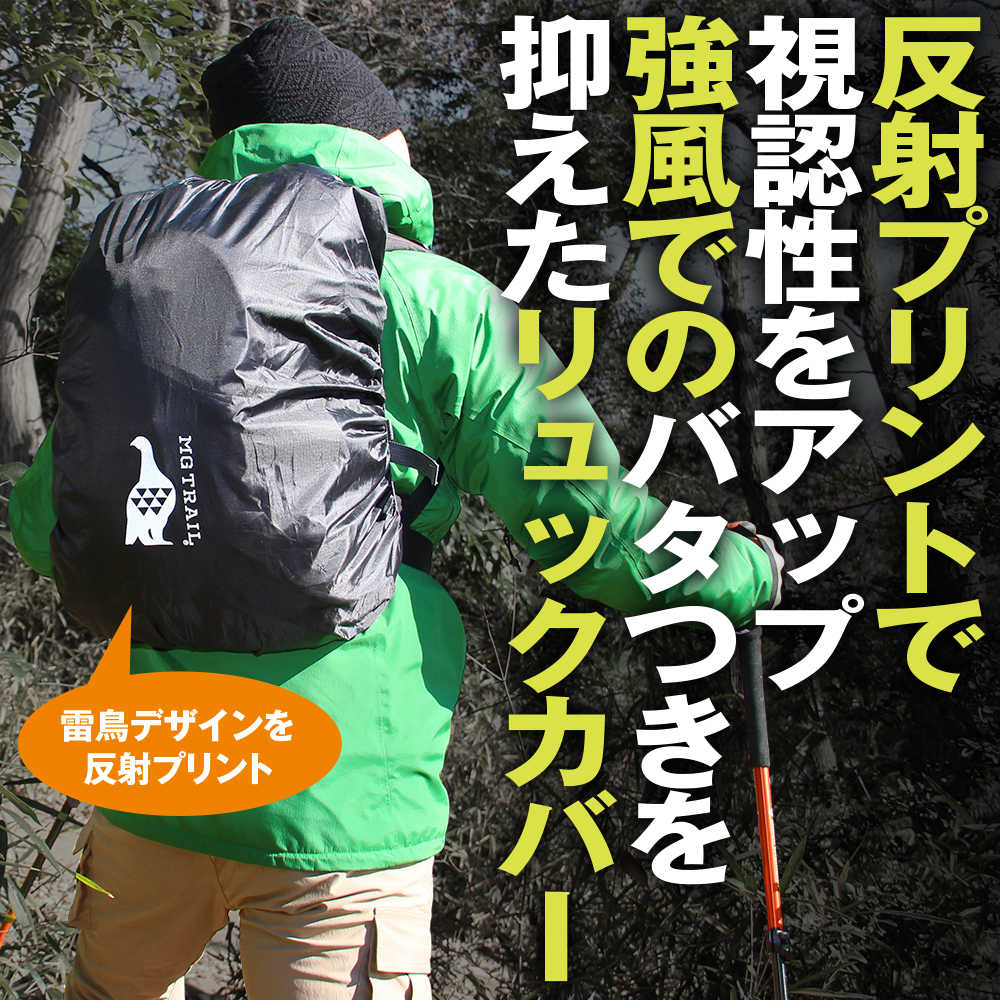レインカバー リュック カバー 防水 反射イラストで視認性アップ 大きめ ザックカバー 雷鳥デザイン 登山 通勤 通学 カバン Mサイズ 40L 50L