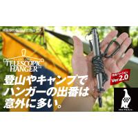 ●実はキャンプでハンガーの出番が多いんです。伸縮してコンパクトに持ち運べるハンガーはかなり便利!