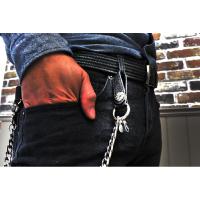 ウォレットチェーン 本革 財布 鎖 くさり メッキ メンズ 黒 ブラック キーリング付き ギフト プレゼント バイク 落下防止