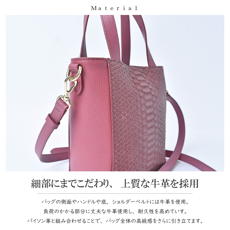 | 品名 | ショルダーバッグ ハンドバッグ パイソン レディース 訳あり アウトレット 本物 本革 蛇革 ヘビ 牛革 カウレザー ミニバッグ トートバッグ 2wayバッグ ワイン ピンク 赤 レッド コンパクト 軽量 軽い 小さい 鞄 斜めかけ プレゼント ギフト 送料無料 |