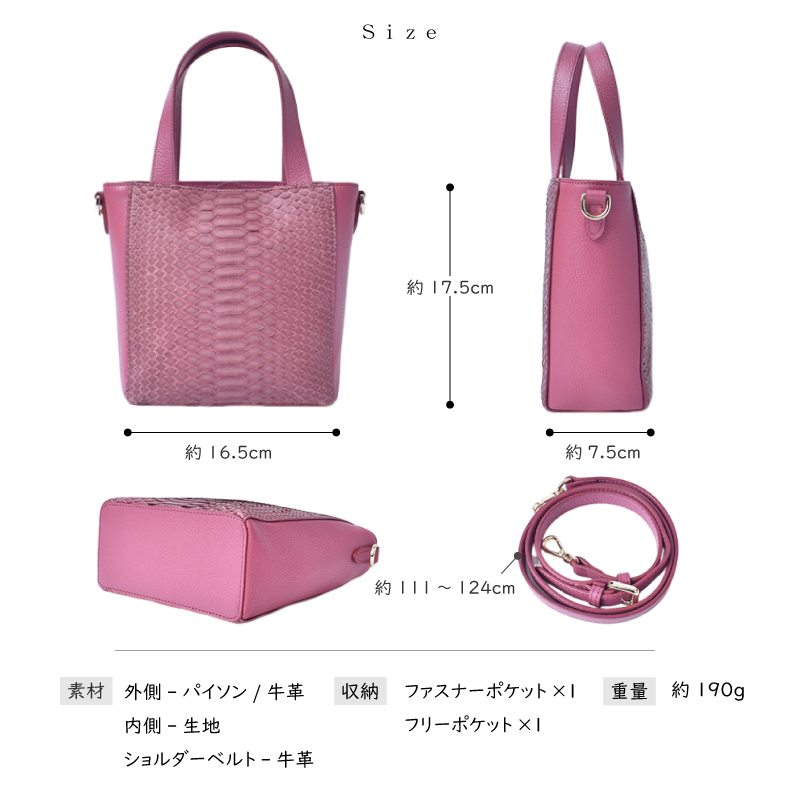 | 素材 | 外側:パイソン/牛革 内側:生地 ショルダーベルト:牛革 |
