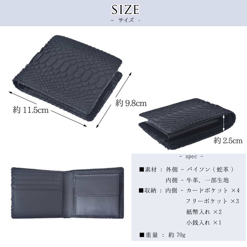 | 品名 | パイソン 二つ折り財布 ヘビ革 一枚革 本革 本皮 メンズ シンプル 折り財布 軽量 薄い 金運 風水 人気 紳士 仕事 お祝い プレゼント ブラック ゴールド グリーン コンパクト 2つ折り ウォレット リアルレザー ギフト 送料無料 |