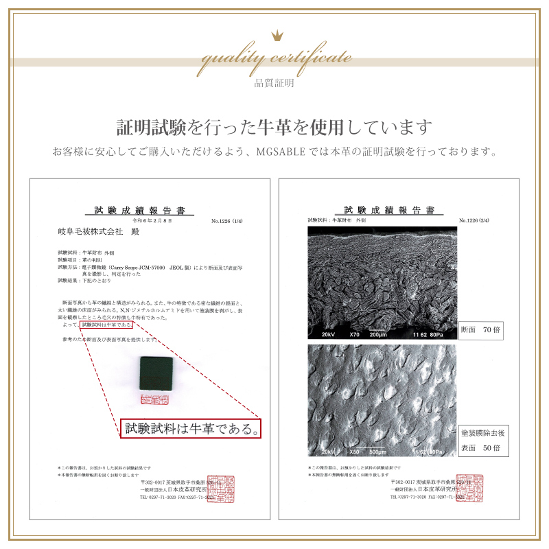 | 使用上の注意 | 本革は水分を嫌いますので、 もし水に濡れたときには乾いた布で水分をふき取り、 直射日光をさけ、自然乾燥させてください。 |