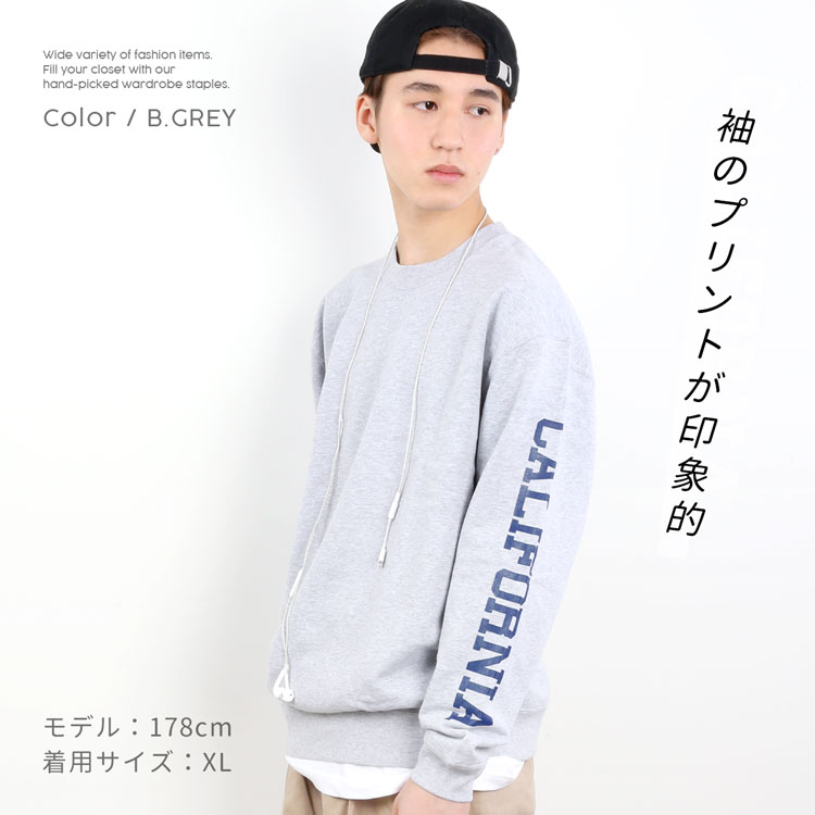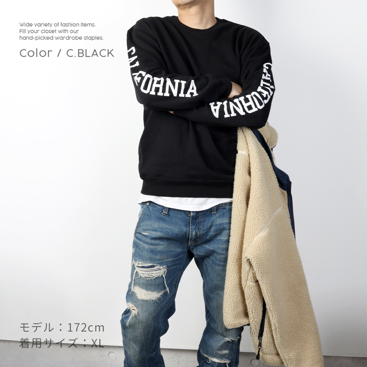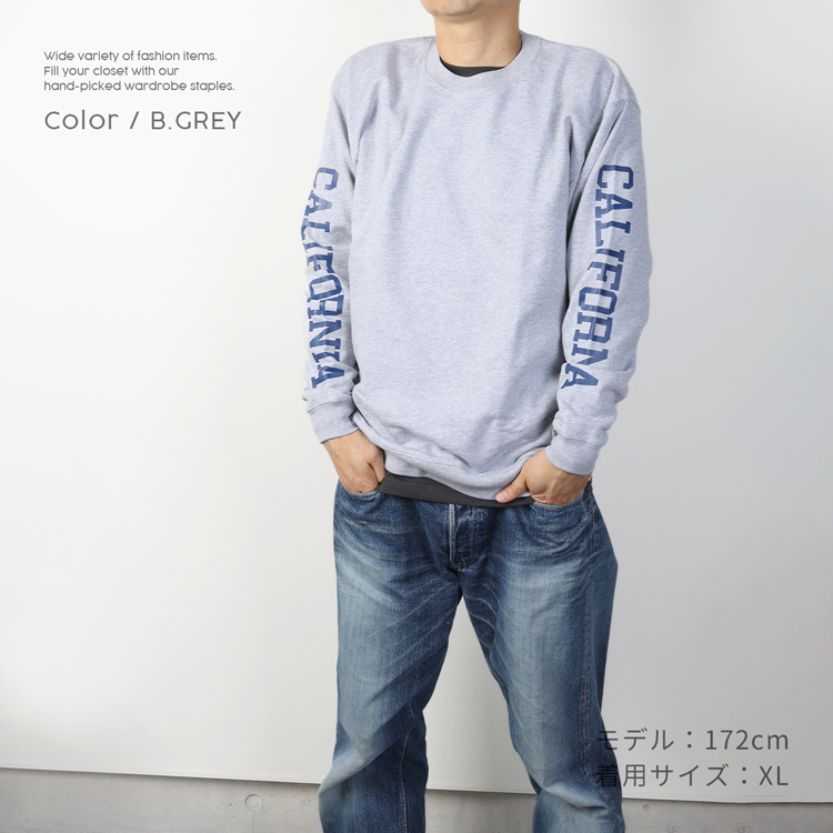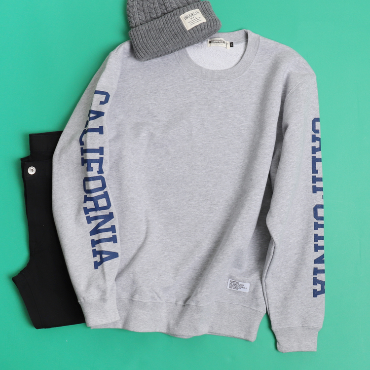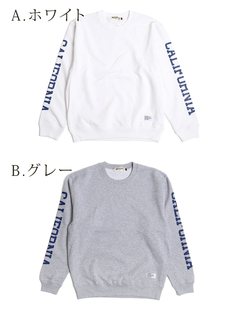 フロントはシンプルに仕上げ、腕にプリントしたCALIFORNIA ロゴがかっこいいスウェット。