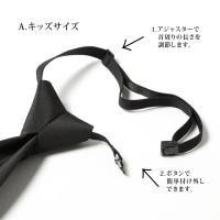 身長別のフォーマルネクタイです。 ワンタッチで簡単に付けられるネクタイ。 A.キッズサイズの首周りは伸縮するゴム素材でサイズ調整もラクラク! E.大人ロングは身長180cm前後の方にオススメです。 付けた時の見た目は普通のネクタイと変わらず、しっかりした作りなので 形が崩れる心配もありません。
