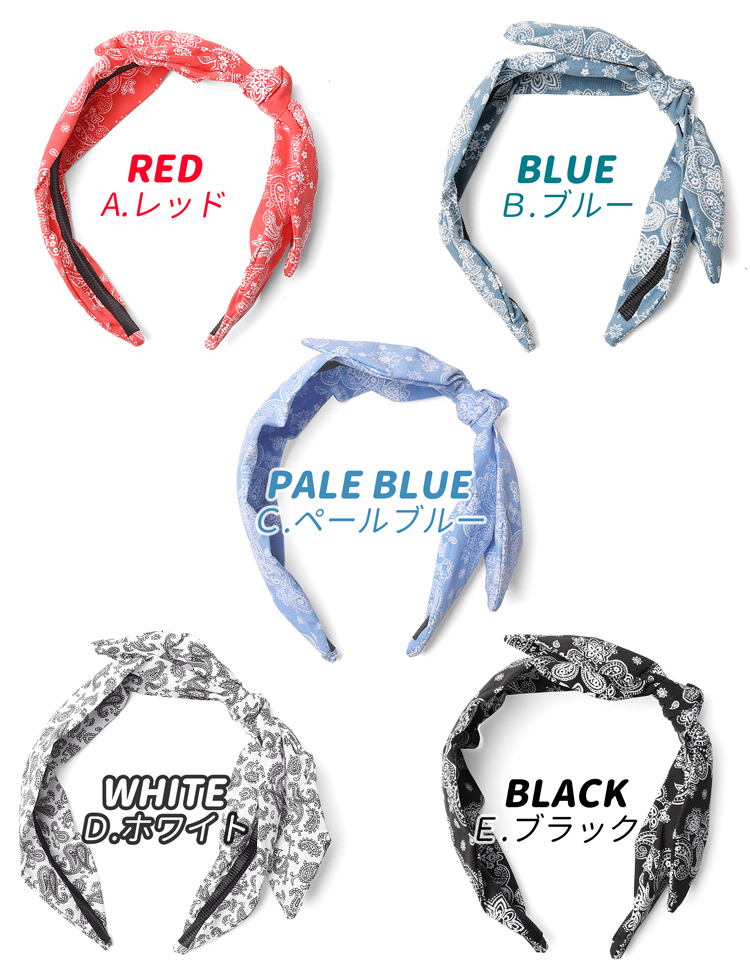ペイズリー柄 バンダナ柄 ・ 全5色 [ A.レッド・B.ブルー・C.ペールブルー・D.ホワイト・E.ブラック ]