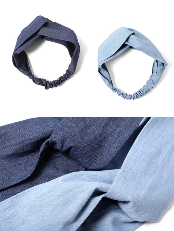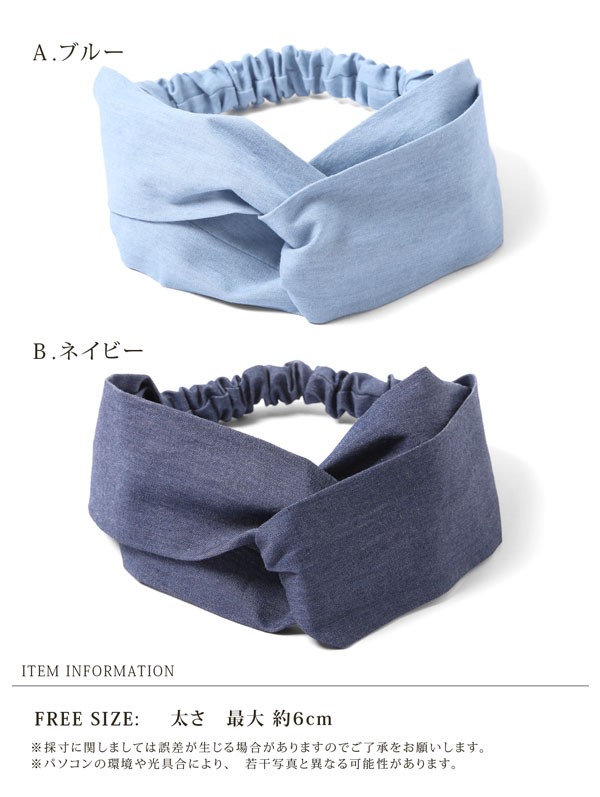 ヘアバンド ターバン ヘアターバン レディース シャンブレー地 クロスヘアバンド ヘアーバンド カチューシャ カチューム デニム 色 クロス ヘッドバンド