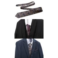 落ち着いたネイビーカラーの地に、大柄のペイズリー柄を大胆に施したネクタイ。華やかさと上品さを兼ね備えた雰囲気は、大人のスーツスタイルに彩りを与えてくれます。剣幅8cmで、幅広いスーツスタイルに合わせやすいデザインです。