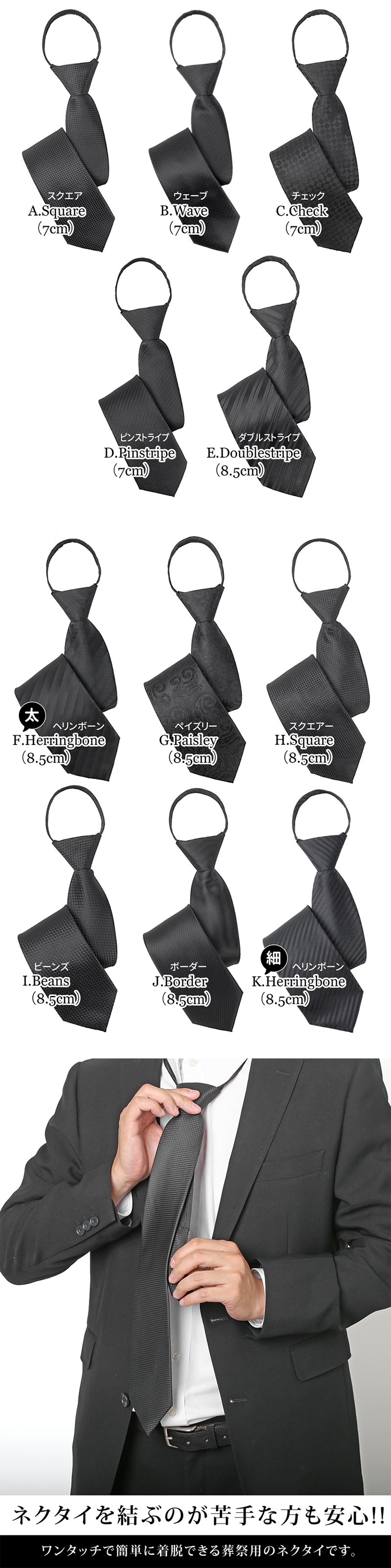 葬儀 ネクタイ / 法事 ネクタイ / ワンタッチネクタイ / フォーマル ネクタイ / メンズ 黒ネクタイ / 礼服用 ネクタイ / 喪服 ネクタイ / 簡単着脱 ネクタイ / フォーマル小物