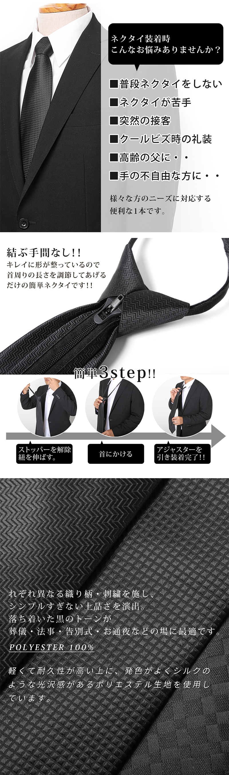 【ワンタッチで簡単装着】葬儀・法要に最適なフォーマルネクタイ