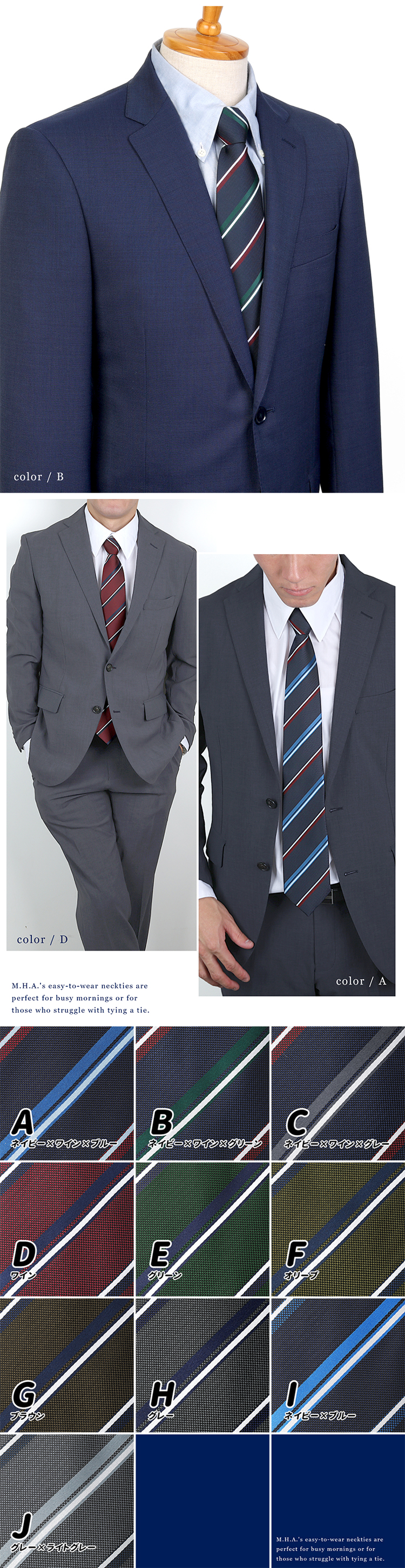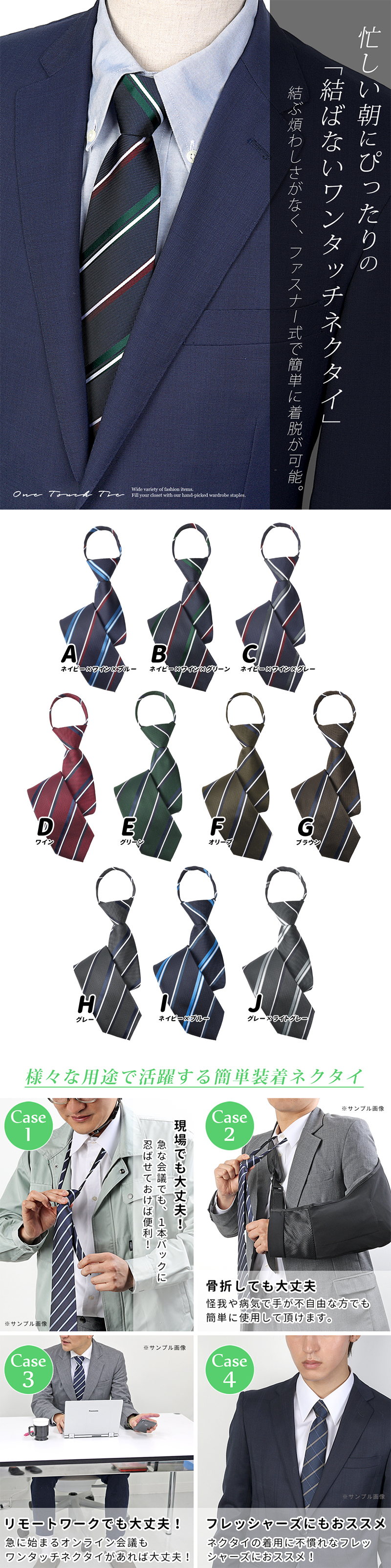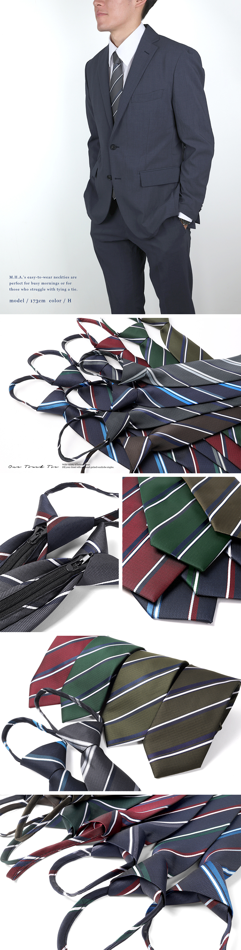忙しい朝に!ワンタッチで簡単装着【ストライプ柄ネクタイ】