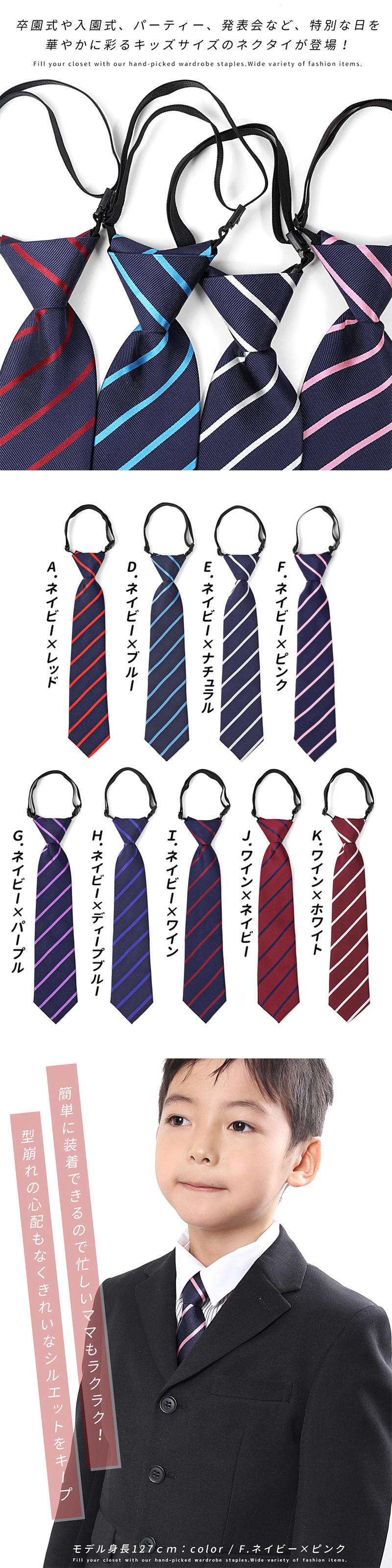 卒園式や入園式、パーティー、発表会など、特別な日を華やかに彩るキッズサイズのネクタイが登場!