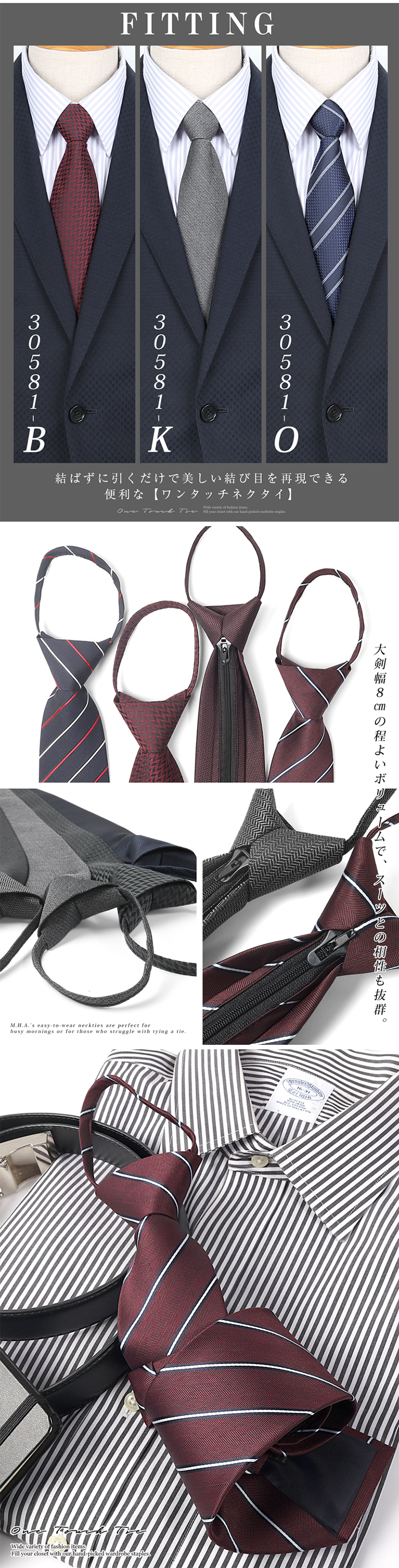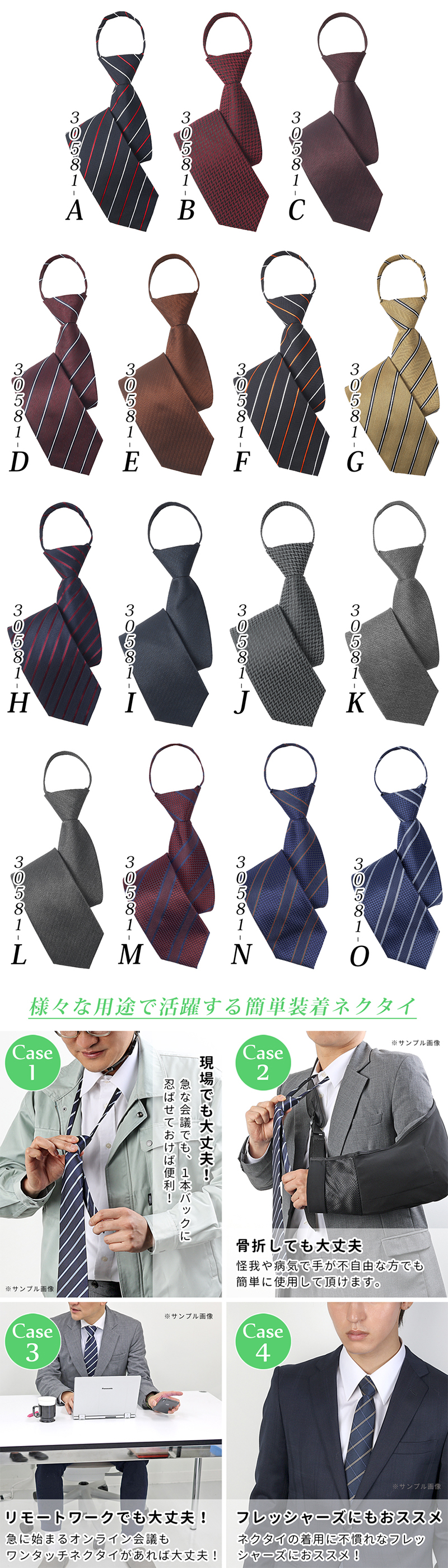 ネクタイを結ぶのが苦手な方や、出勤・面接・冠婚葬祭など「時間をかけずにきちんと見せたい」場面に最適。