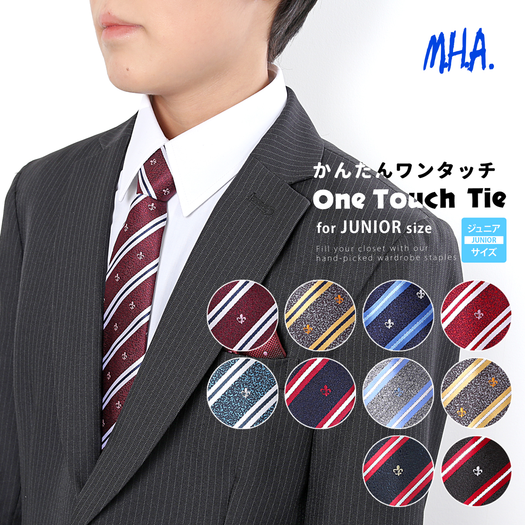 子供でも簡単に着用できるジュニアサイズのワンタッチネクタイ。