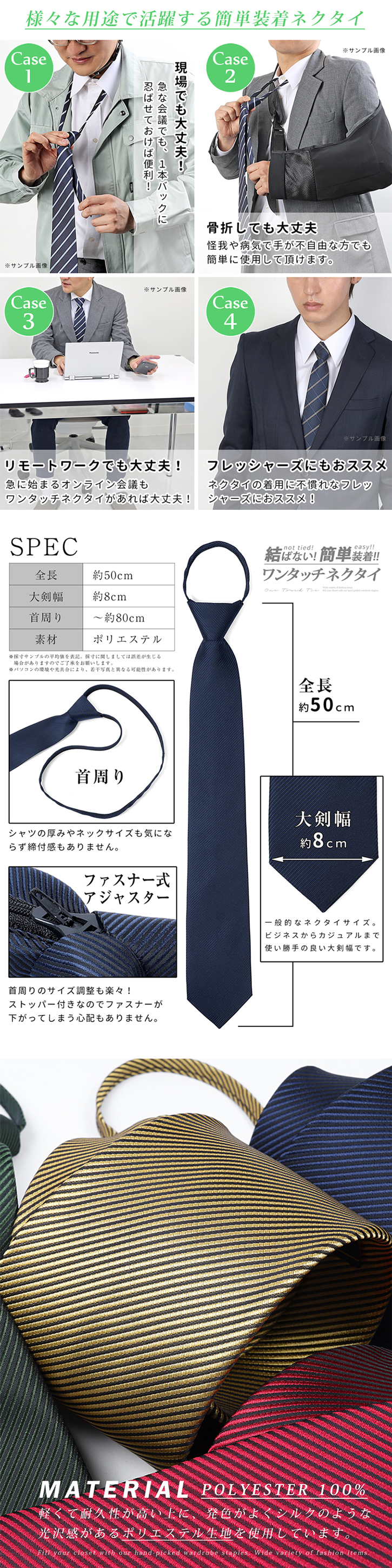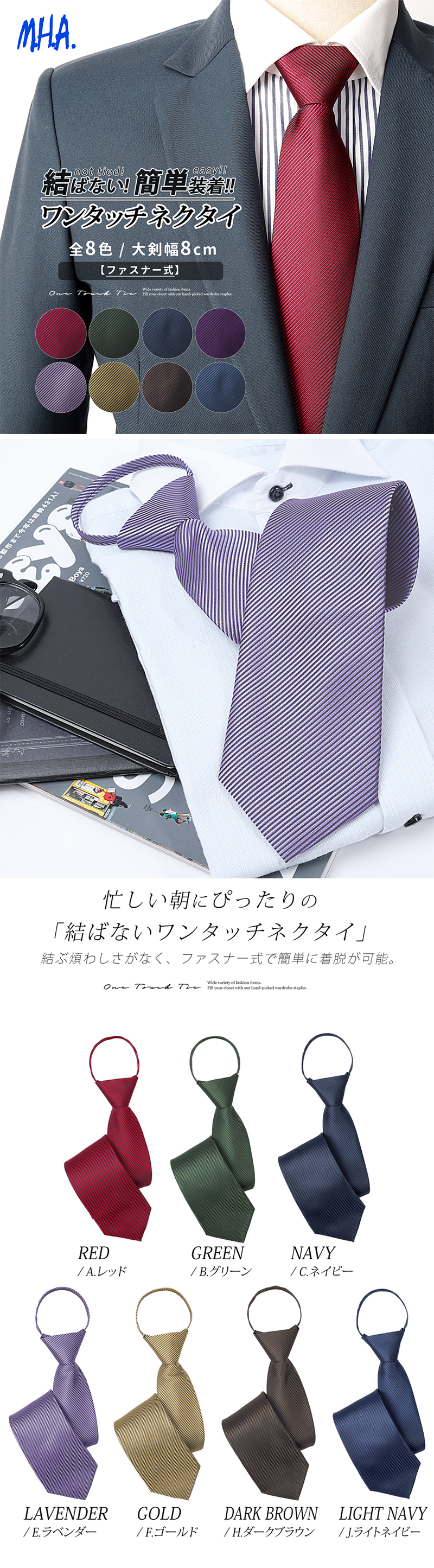 時間がない朝でも素早く身だしなみが整い、初心者の方でも常に整ったノットが決まります。