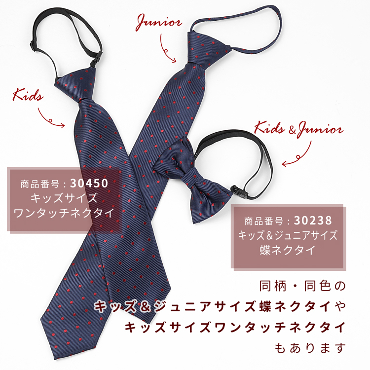 人気のジュニアサイズネクタイに、ベーシックなドット柄が登場☆