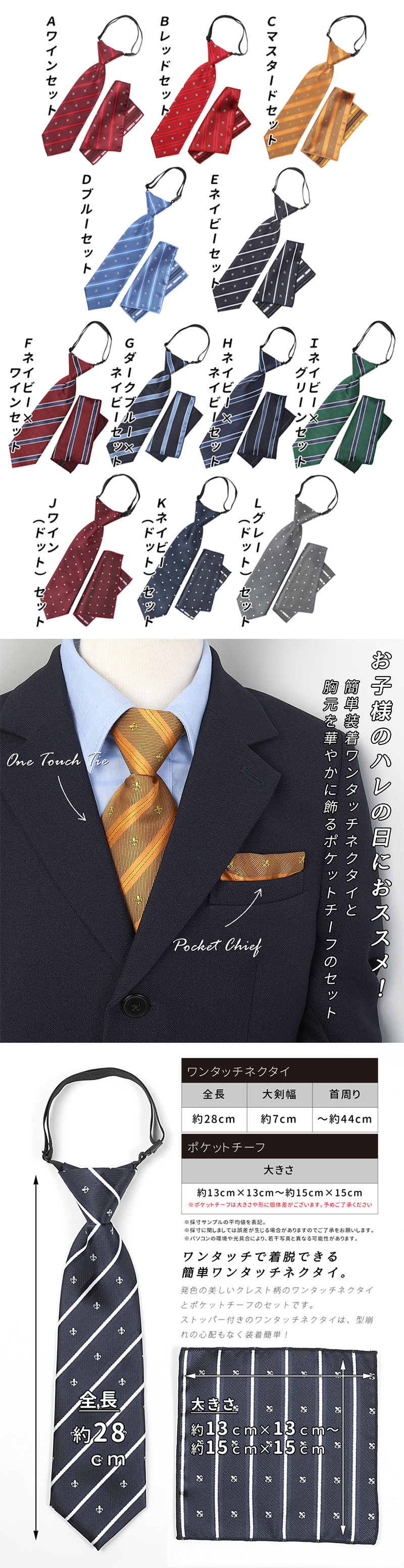 子供 ネクタイ チーフ セット ポケットチーフ キッズネクタイ キッズ 子供 ワンタッチネクタイ 100 110 120