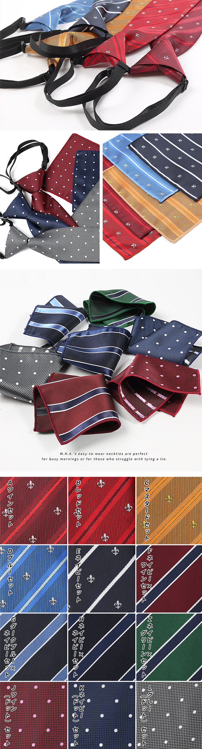 ネクタイはワンタッチの簡単装着で、素早くおしゃれに決まります!