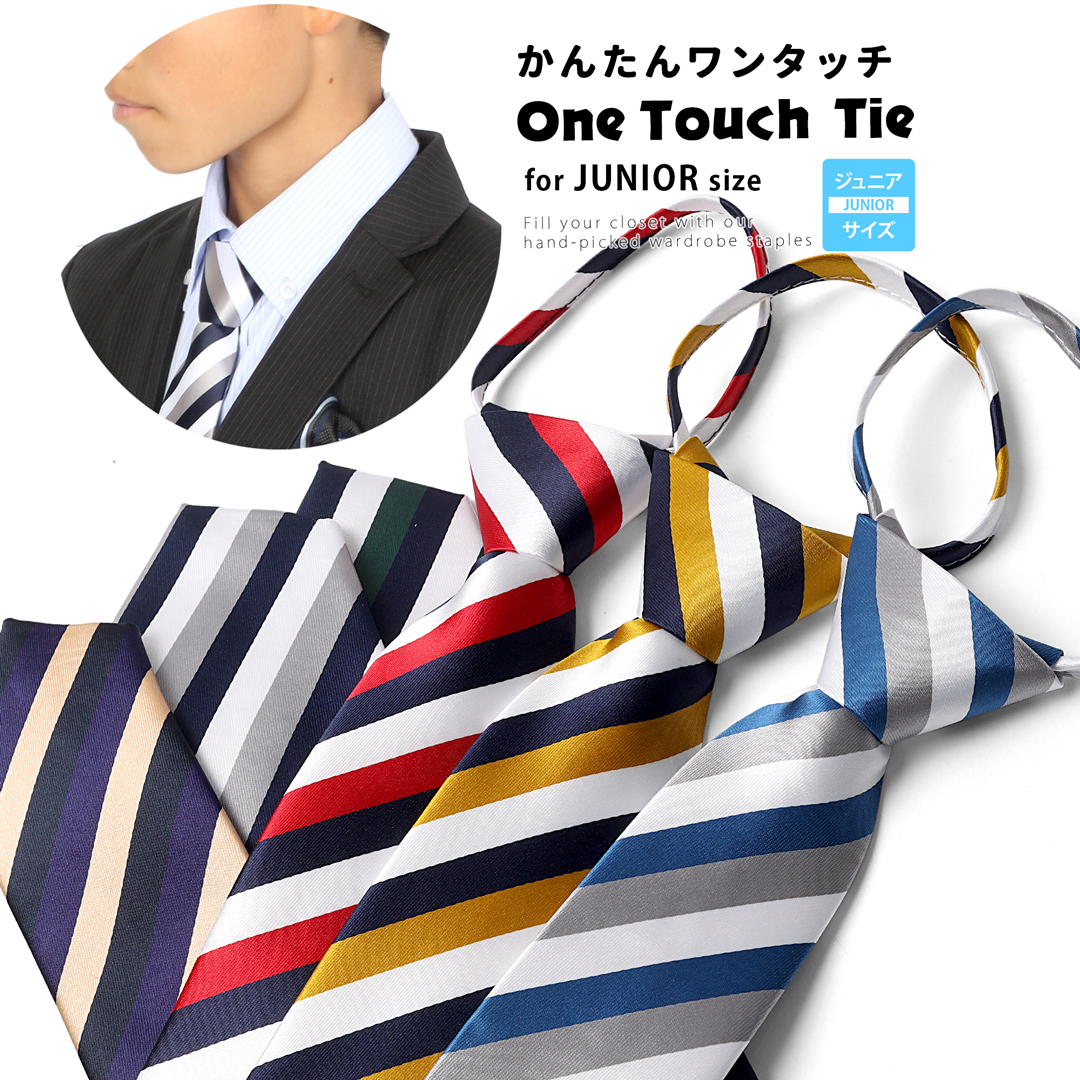 キッズ ネクタイ 子供 ワンタッチ ジュニア 子ども ワンタッチネクタイ クイックネクタイ フォーマルネクタイ ストライプ 簡単 簡単ネクタイ