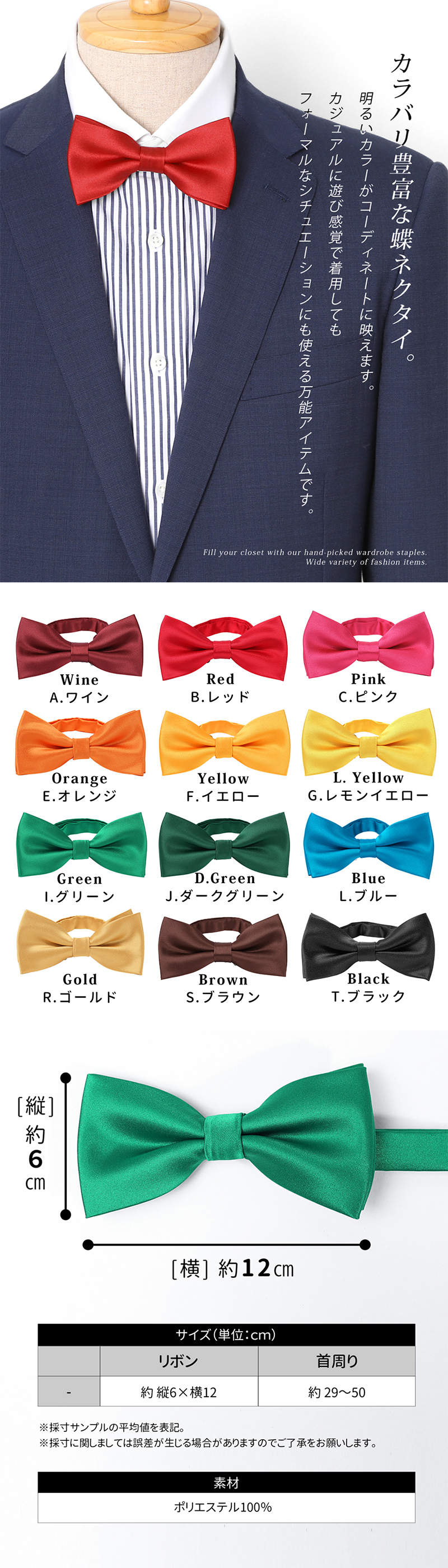 ネクタイ 無地 蝶ネクタイ カラー ボウタイ 蝶タイ メンズ レディース 結婚式 スーツ