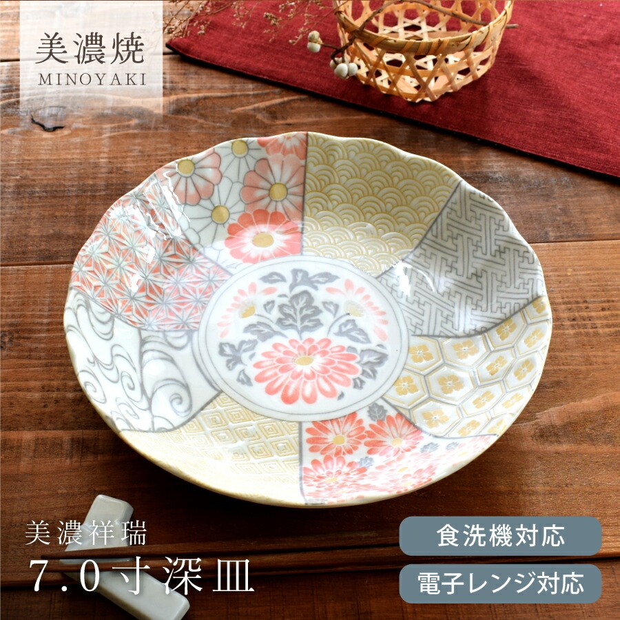 皿 食器 和食器 おしゃれ 深皿 美濃祥瑞7.0寸深皿 美濃焼 スープ皿 おかず皿 大皿 丸皿 プレート モダン 和柄 伝統模様 国産 電子レンジ対応 食洗機対応